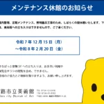 お知らせ 2025年12月5日 お知らせ 休館のお知らせ 2025年11月12日 お知らせ コレクション展 小林数展開催中! 2025年11月3日 お知らせ 描く人、安彦良和展は終了しました 2025年11月2日 イベント情報 マチナカギャラリー「地球に生きる 三輪晃久写真展」開催中です! 2025年10月29日 お知らせ 安彦良和先生の描き下ろしイラストを展示中です! 2025年10月21日 お知らせ 3000人達成!「描く人、安彦良和」 2025年9月30日 お知らせ 安彦良和氏講演会 整理券についてのご案内 2025年9月25日 イベント情報 まなトピア2025ペキタ工作広場開催のお知らせ 2025年9月17日 イベント情報 安彦良和先生のサイン会開催決定!※定員に達しましたので、お申込みを締め切らせていただきます。 2025年9月14日 お知らせ 「描く人、安彦良和」展 祝!10万人達成 2025年9月13日 お知らせ 特別上映会+舞台挨拶 開催レポート 2025年9月12日 お知らせ 「描く人、安彦良和」いよいよ開幕! 2025年8月31日 お知らせ 海洋堂フィギュア展は終了いたしました 2025年8月15日 イベント情報 ウェブサイトでも受付!「描く人、安彦良和」特別上映会+舞台挨拶 2025年8月12日 お知らせ ペキタの展覧会取材ーさかなクンのギョ苦楽展に行ってきたよ アーカイブ 月を選択 2025年12月 2025年11月 2025年10月 2025年9月 2025年8月 2025年7月 2025年6月 2025年5月 2025年2月 2024年12月 2024年11月 2024年10月 2024年9月 2024年8月 2024年7月 2024年6月 2024年5月 2024年4月 2024年3月 2024年2月 2023年12月 2023年11月 2023年10月 2023年9月 2023年8月 2023年7月 2023年6月 2023年5月 2023年4月 2023年3月 2023年2月 2023年1月 2022年11月 2022年10月 2022年9月 2022年8月 2022年7月 2022年6月 2022年5月 2022年4月 2022年2月 2022年1月 2021年12月 2021年11月 2021年10月 2021年9月 2021年8月 2021年7月 2021年6月 2021年5月 2021年4月 2021年3月 2021年2月 2021年1月 2020年12月 2020年11月 2020年10月 2020年9月 2020年8月 2020年7月 2020年6月 2020年5月 2020年4月 2020年3月 2020年2月 2020年1月 2019年11月 2019年10月 2019年9月 2019年8月 2019年7月 2019年6月 2019年5月 2019年4月